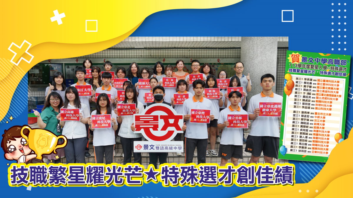 賀★景文高中菁英創佳績·技職繁星大放異彩★